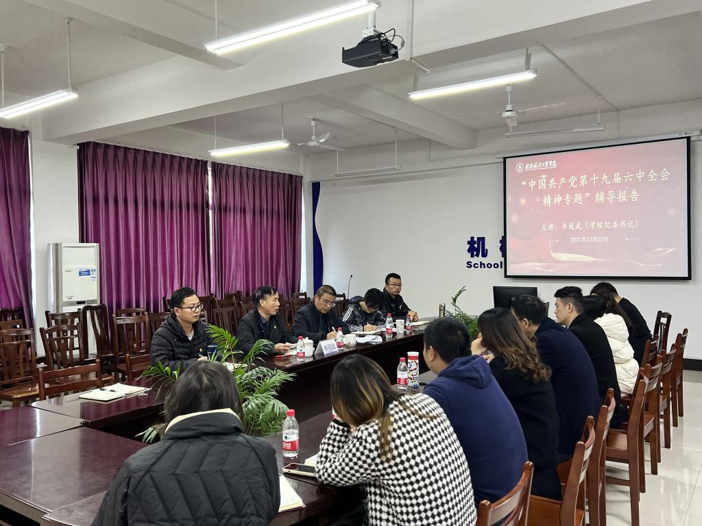 12月2日下午,2138cn太阳集团古天乐组织总支全体委员、支部全体委员、双带头人书记培育对象召开关于党的十九届六中全会、自治区第十二次党代会的理论研习会。学校纪委书记韦冠武出席指导并作“中国共产党第十九届六中全会精神”专题辅导报告。