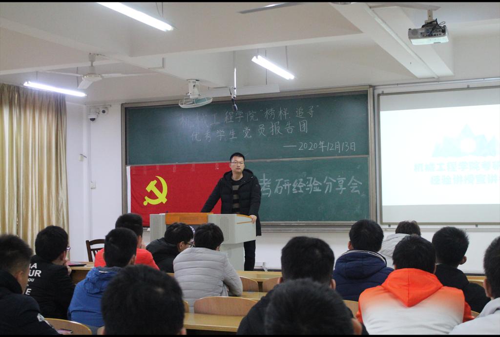 2020年12月13日早上9:00,机械工程学院在飞天楼211教室召开了考研经验交流会。本次会议,分别邀请了桂林电子科技大学的丁结平、郑州大学的张永宾、南京航空航天大学的安邦宇、中国民航大学的邵金玉、广东工业大学的夏浩涛等各位前辈以及学院团委书记为各位同学分享考研的经验。